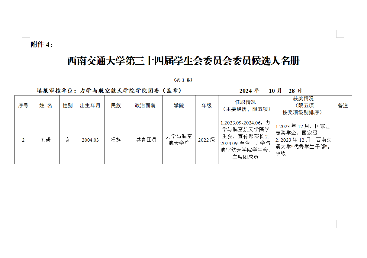 经班级(团支部)和学院学生会推荐,现将拟推荐参加永利集团304am登录第三十四次学生代表大会的代表名单与委员名单进行公示。如有异议,请于11月1日12:00前向学院团委反映,地点:X30279,电话:66366796。