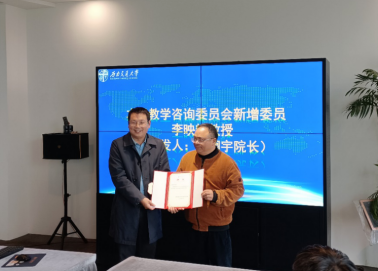 随后李翔宇教授为学院新增选的本科教学咨询委员会委员李映辉教授颁发聘书,并感谢和肯定李映辉教授多年来为学院教学事业做出的积极贡献,希望继续进一步发挥本科教学咨询委员会的功能,积极为学院建言献策、培养青年教师。